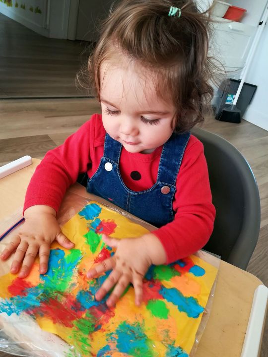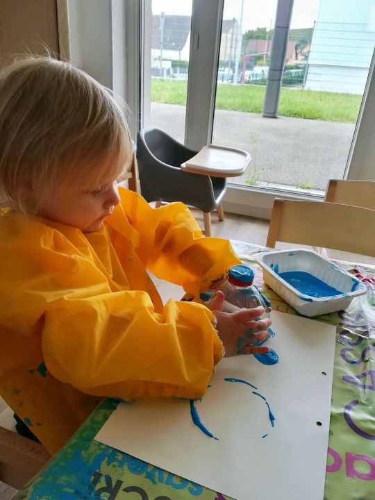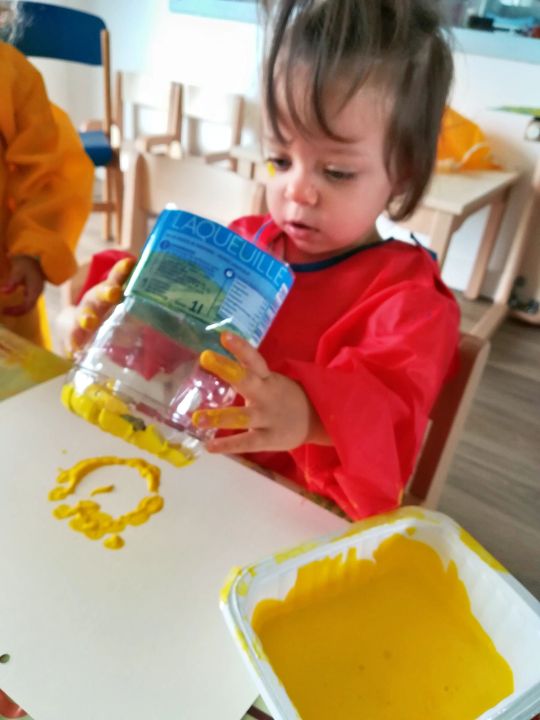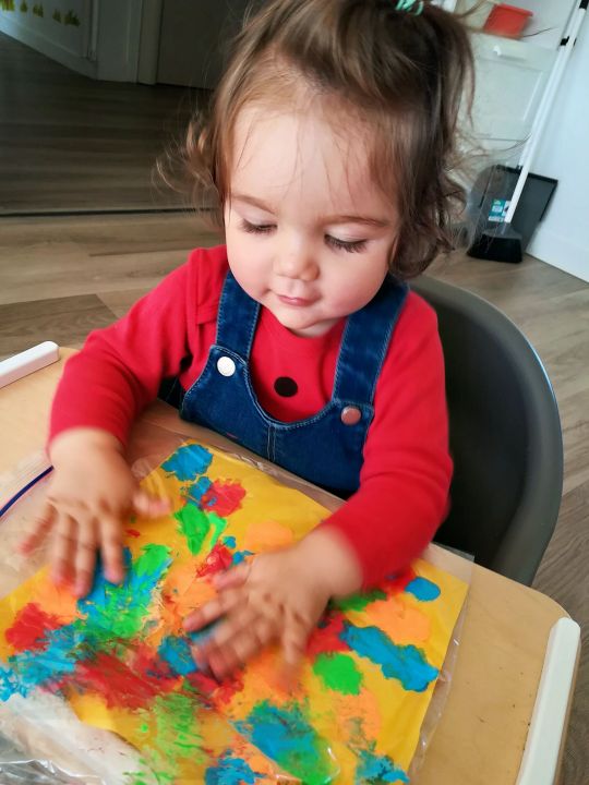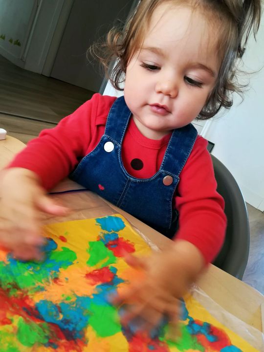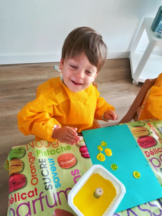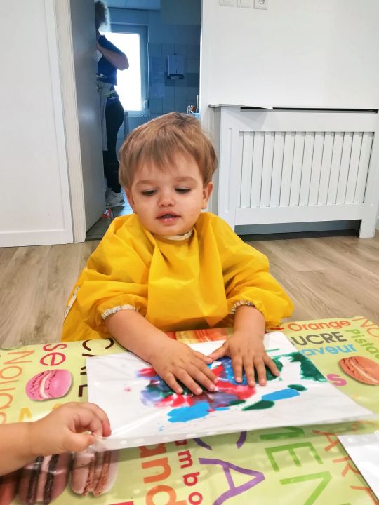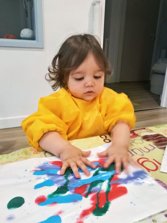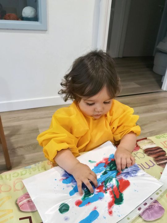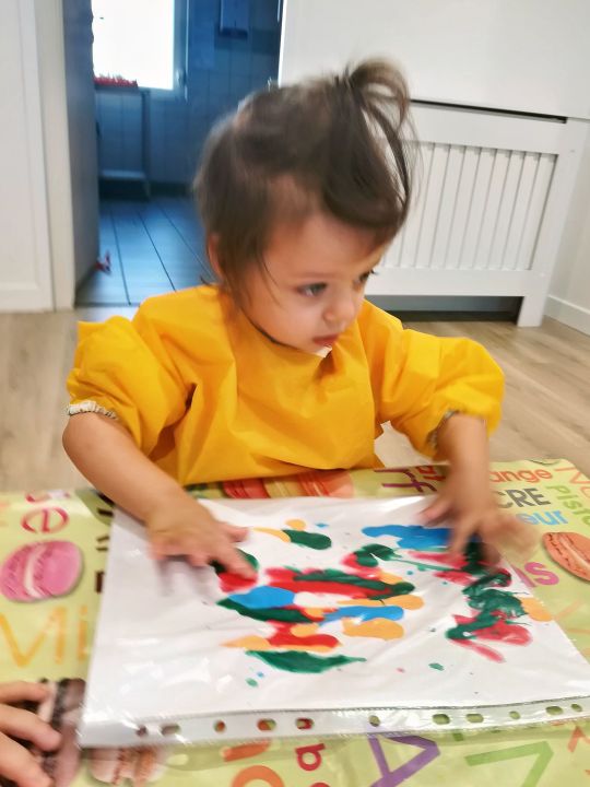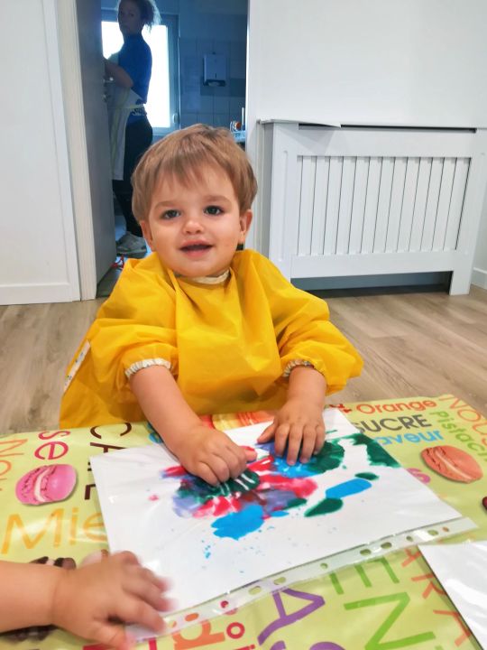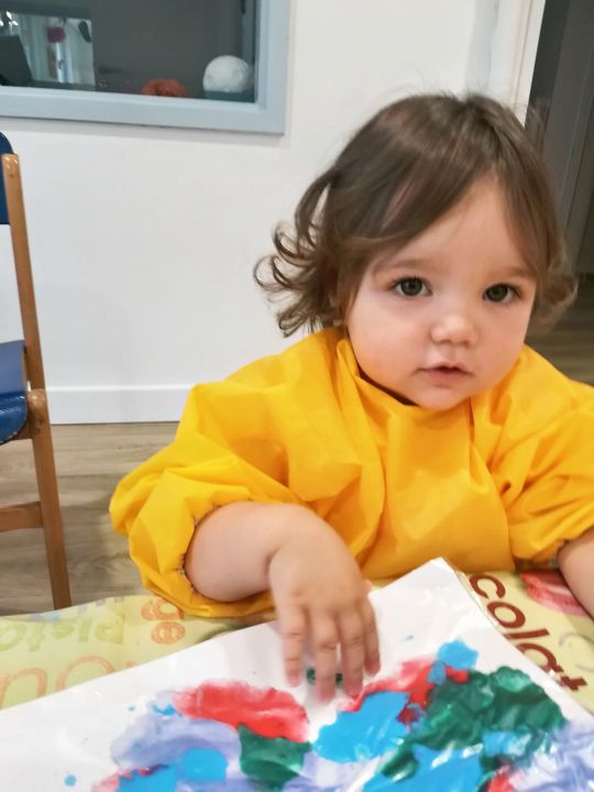Élise, épanouie et curieuse de chaque activité proposée, aussi bien les moments de jeux extérieurs, de peinture, d'exploration de bac sensoriel.... Élise travaille son imaginaire, sa motricité, sa préhension fine toujours avec le sourire. 😊