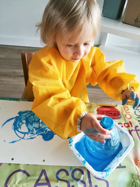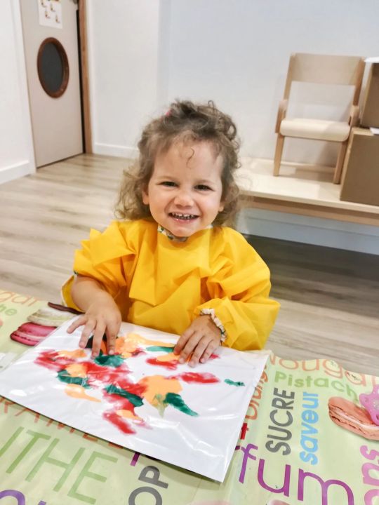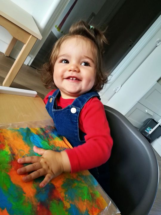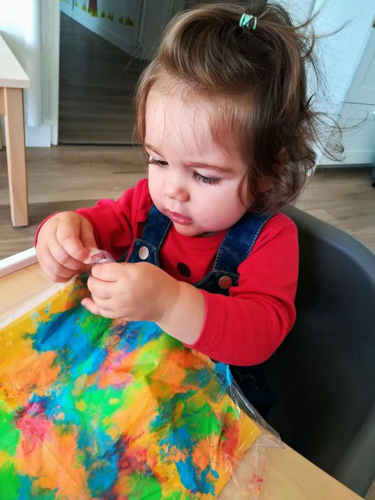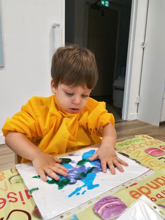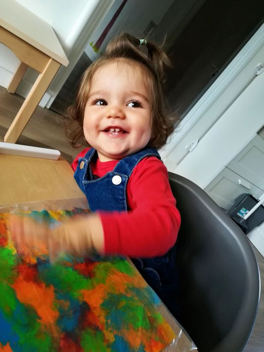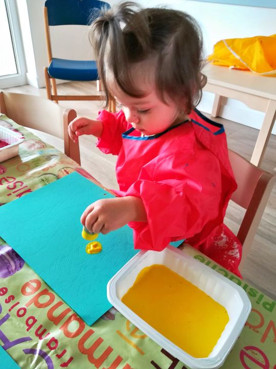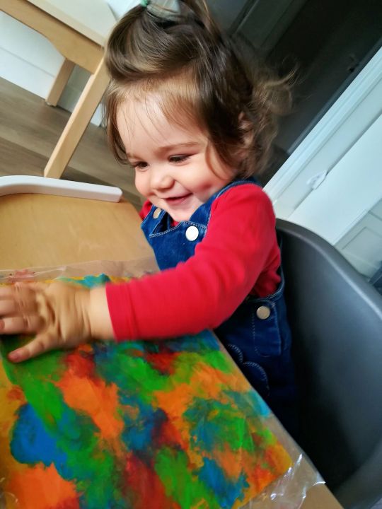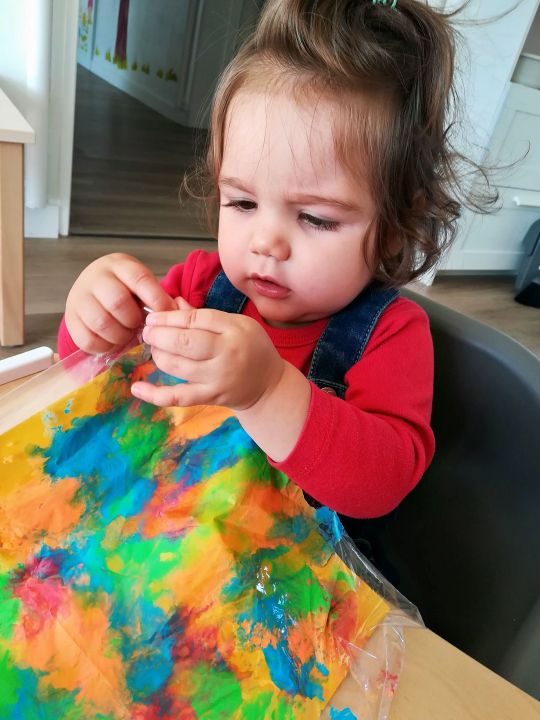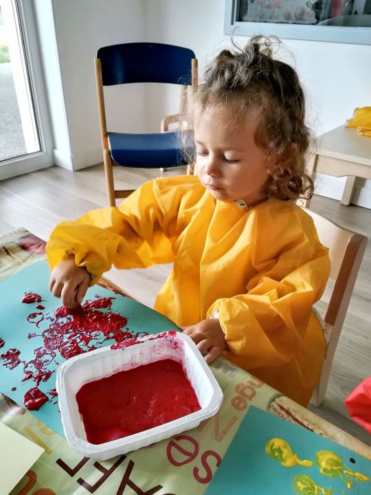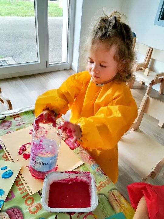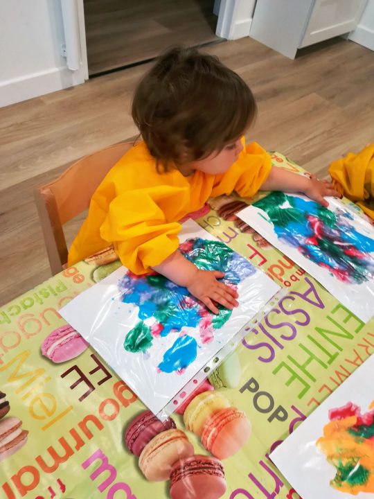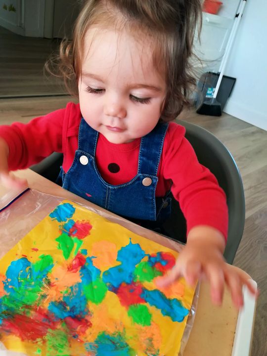 Élise, épanouie et curieuse de chaque activité proposée, aussi bien les moments de jeux extérieurs, de peinture, d'exploration de bac sensoriel.... Élise travaille son imaginaire, sa motricité, sa préhension fine toujours avec le sourire. 😊