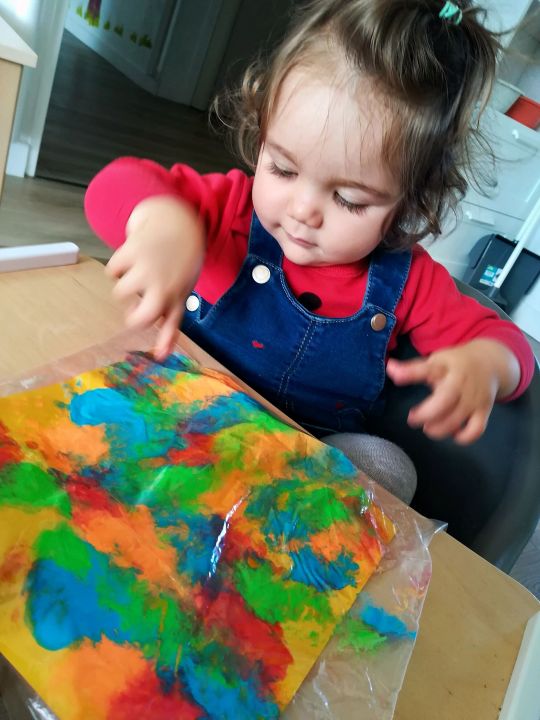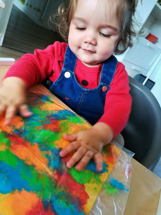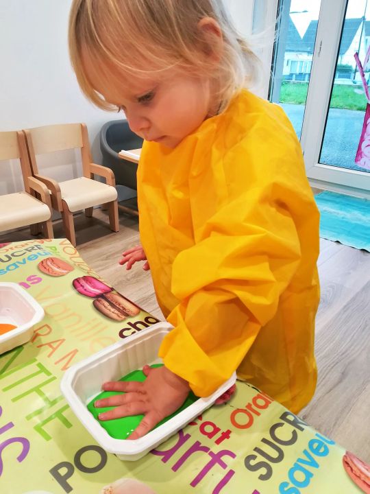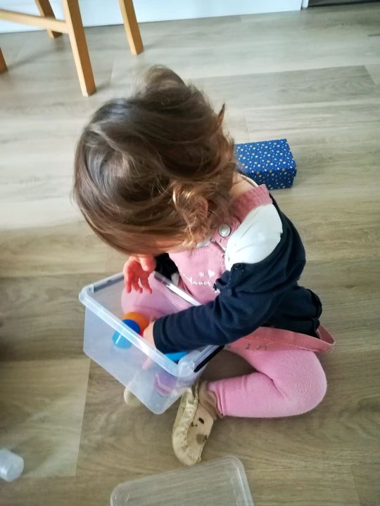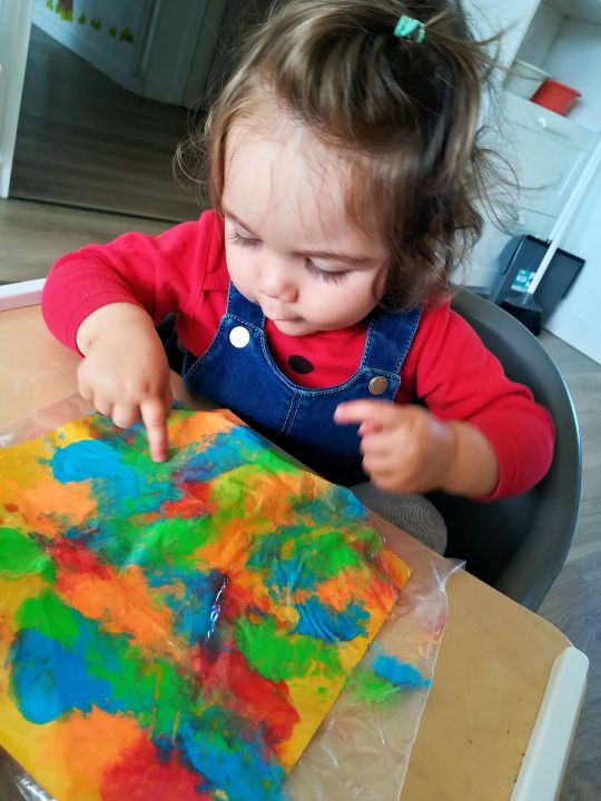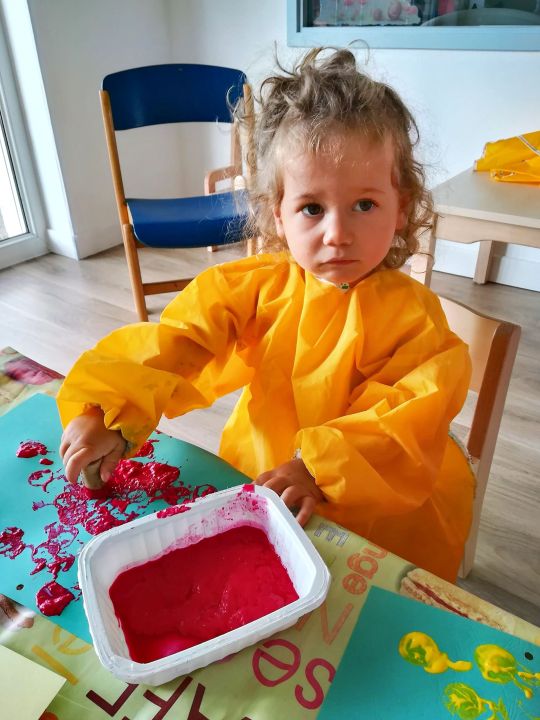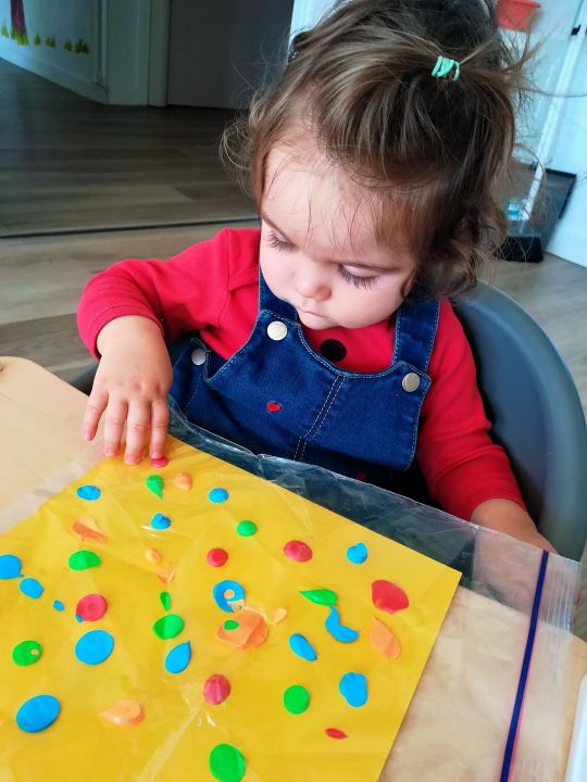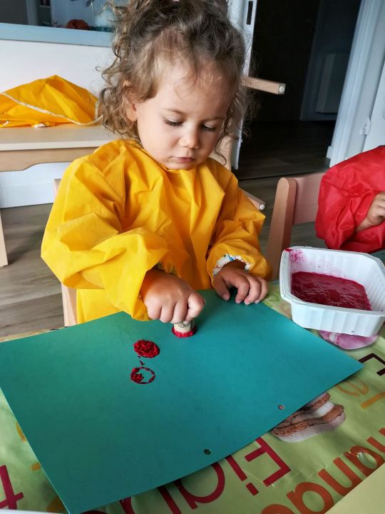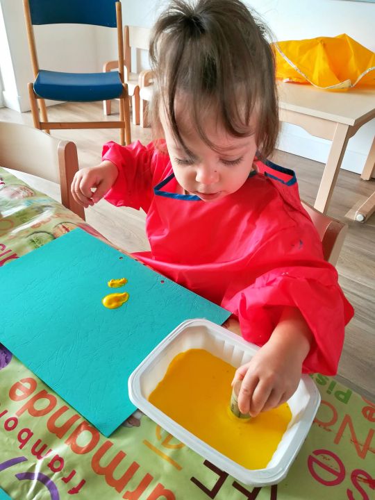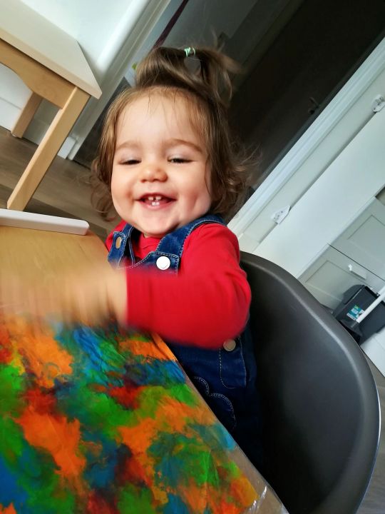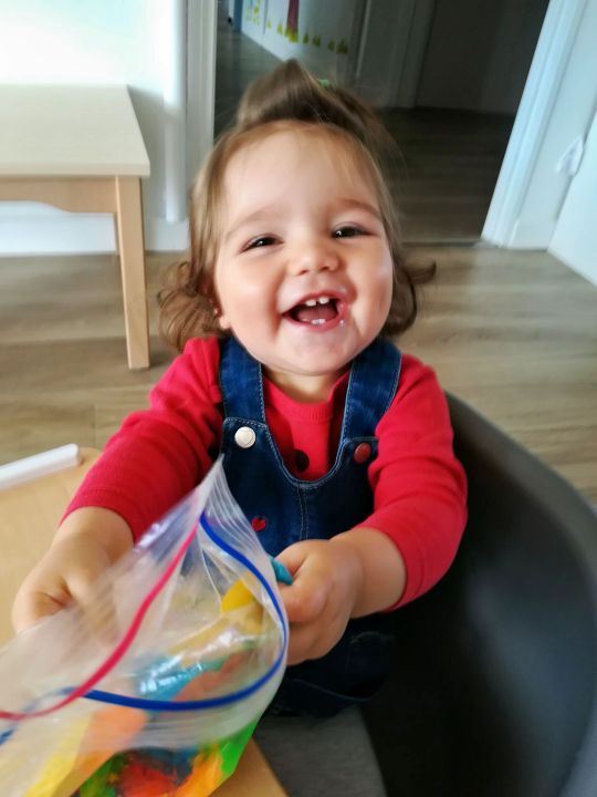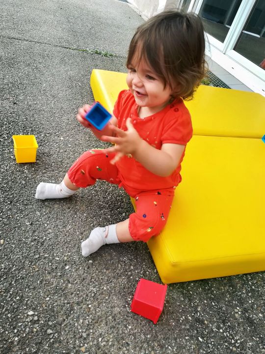 Élise, épanouie et curieuse de chaque activité proposée, aussi bien les moments de jeux extérieurs, de peinture, d'exploration de bac sensoriel.... Élise travaille son imaginaire, sa motricité, sa préhension fine toujours avec le sourire. 😊