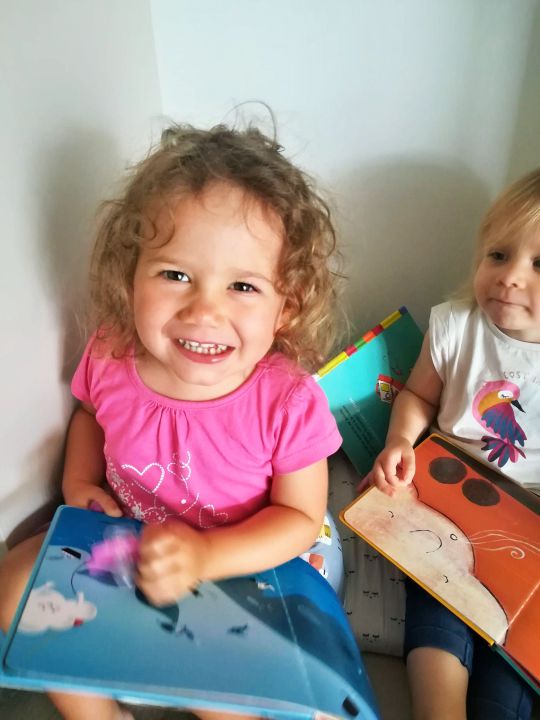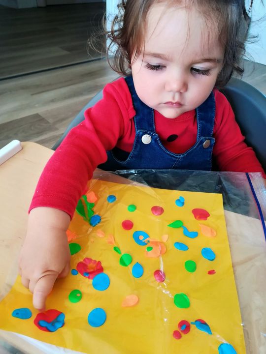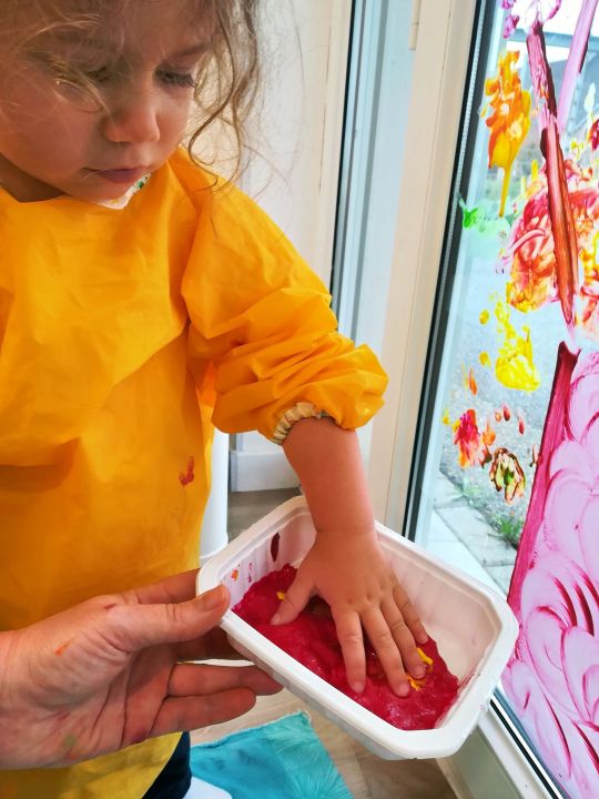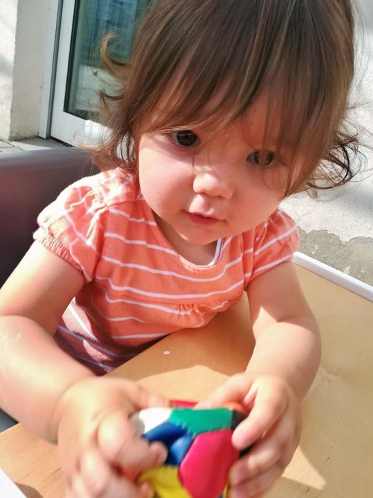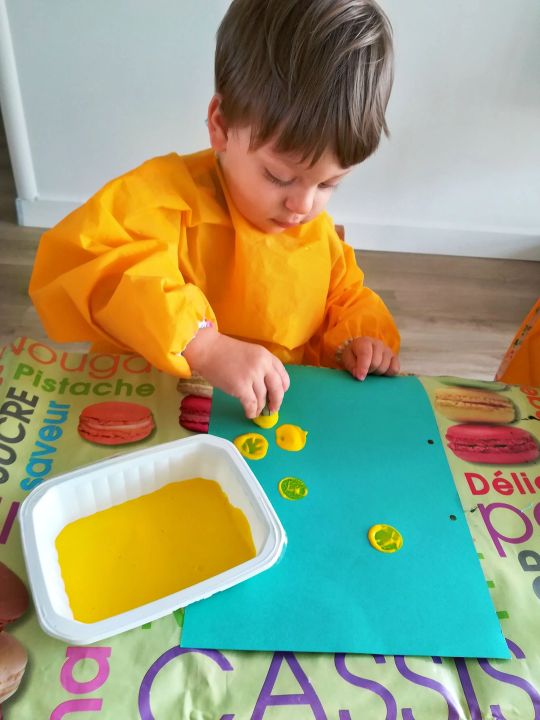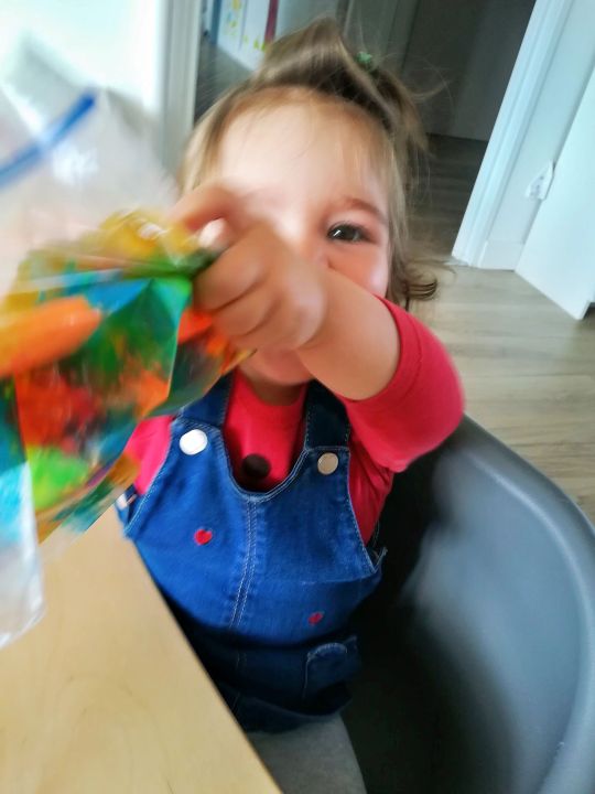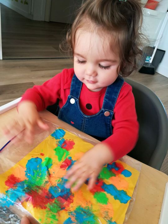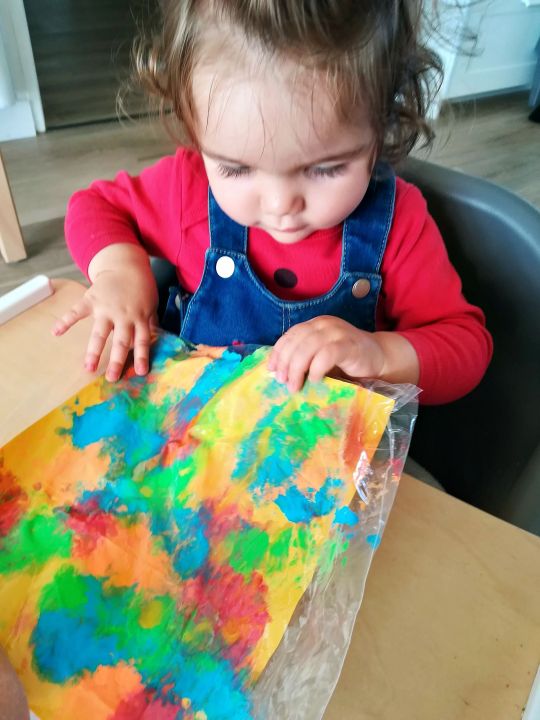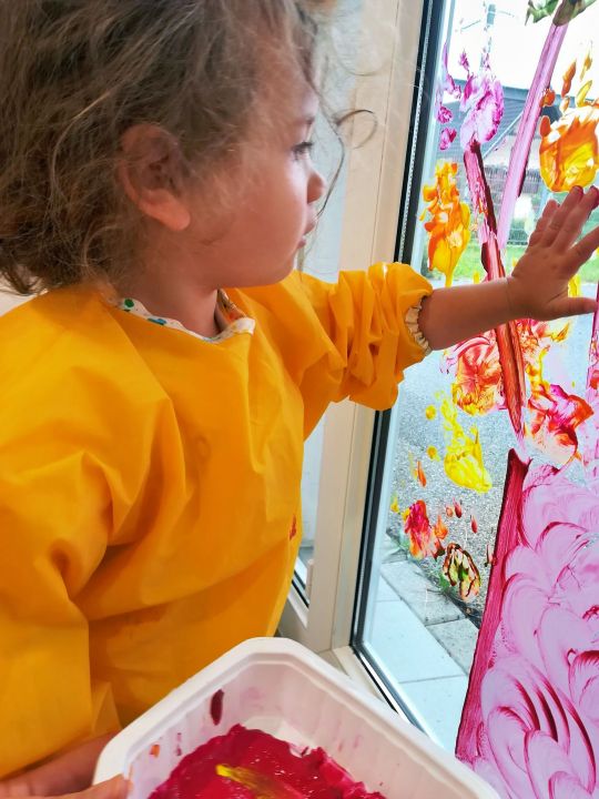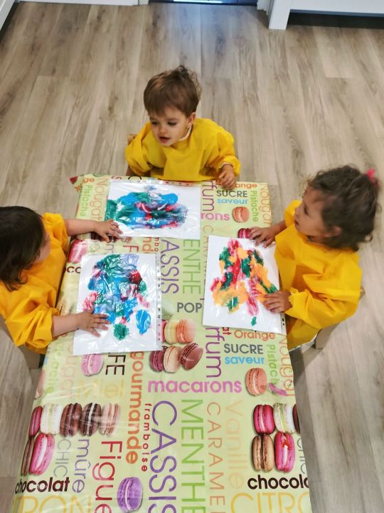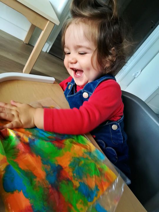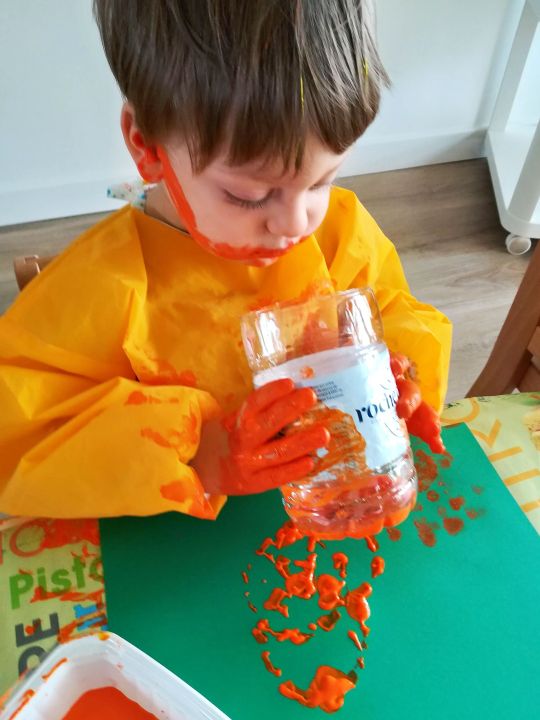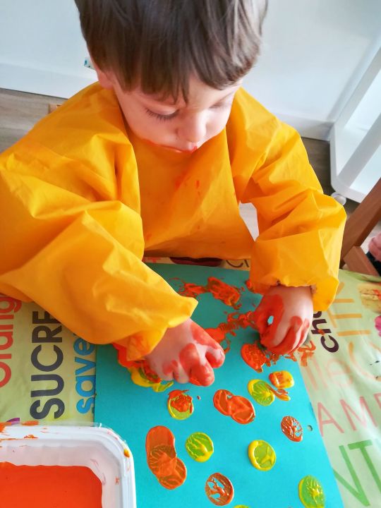 Élise, épanouie et curieuse de chaque activité proposée, aussi bien les moments de jeux extérieurs, de peinture, d'exploration de bac sensoriel.... Élise travaille son imaginaire, sa motricité, sa préhension fine toujours avec le sourire. 😊