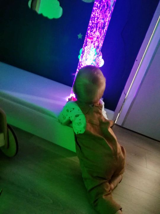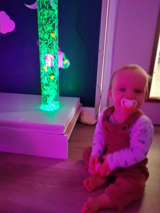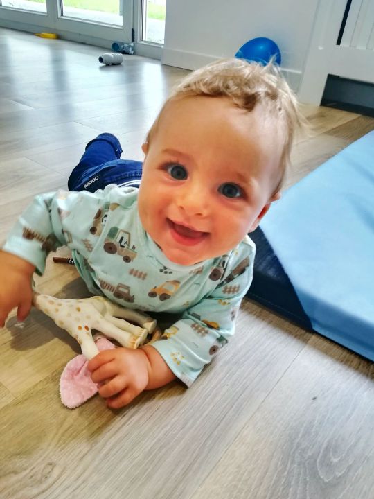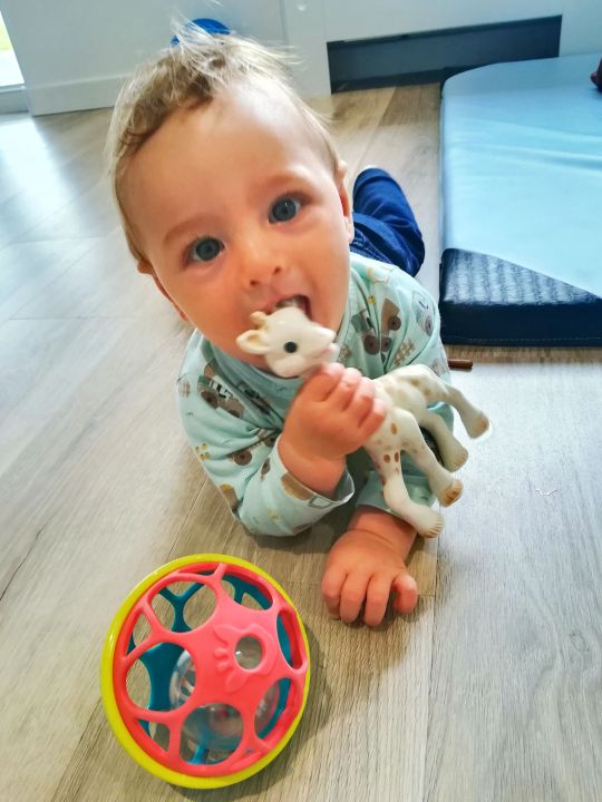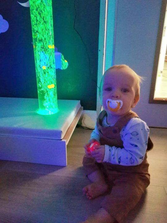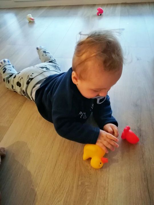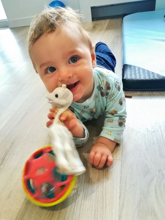 Gael qui a rejoint le groupe des bébés depuis peu se mouvoit au sol et découvre la manipulation d'objets ainsi que la salle sensorielle qu'il apprécie beaucoup😊