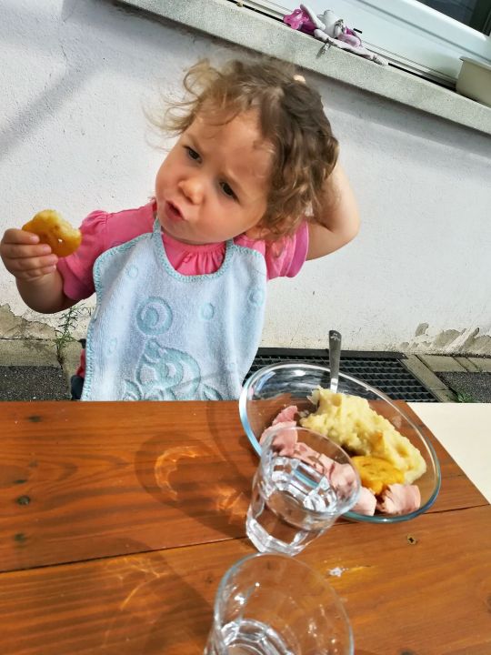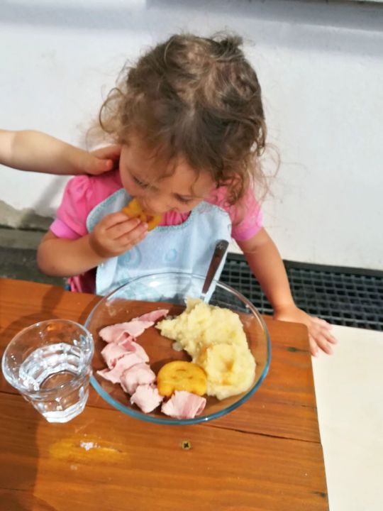Purée de céleri / jambon/ patata rigolo (potatoes) dehors entre copains👌