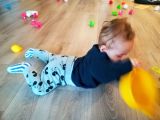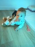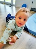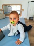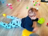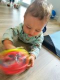 Gael qui a rejoint le groupe des bébés depuis peu se mouvoit au sol et découvre la manipulation d'objets ainsi que la salle sensorielle qu'il apprécie beaucoup😊