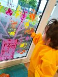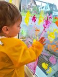 Peinture propre, peinture aux bouchons, à la fourchette, à la bouteille, au rouleau de papier toilette, ou avec nos petites mains sur les vitres pour créer 2 beaux arbres d'Automne ! 🍁🍂